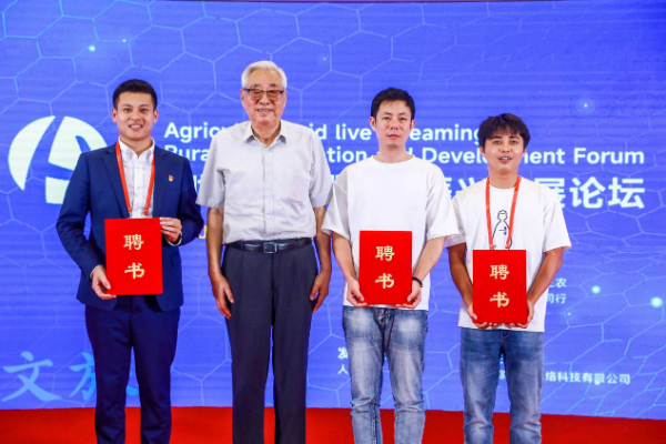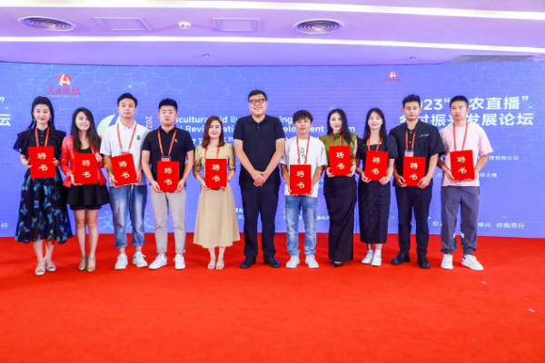 论坛现场进行了人民三农乡村振兴浙江运营中心启动仪式,与三农主播、机构聘任仪式。“农村小伙创业7年”的达人代坤、“两位杂技艺人”石磊&菲菲 、“全能外卖小哥”海扬等30位主播达人上台领取聘任证书,代坤作为主播代表发言。