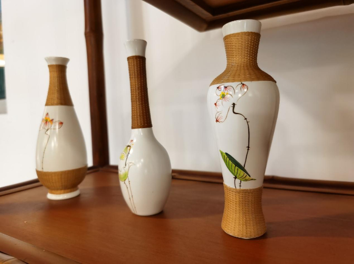 杨昌芹告诉记者,她自己曾先后到上海美院和清华美院进修学习。同时上海美院的学生也经常会到“极竹堂”研学,并带来一些新的创意和设计理念。如今,她们创新性地推出了竹编瓷器、竹编首饰、竹编禅意香炉等一系列竹编工艺品,备受青年消费者的推崇和喜爱。
