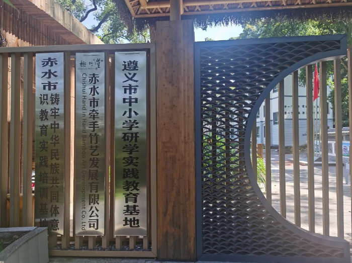 贵州省赤水市大同镇的极竹堂竹编基地,也常常迎来前来研学的中小学生以及一些竹编爱好者们。在“极竹堂”的门口,还挂着“遵义市中小学研学实践教育基地”和“赤水市铸牢中华民族共同体意识教育实践培训基地”两个牌子。