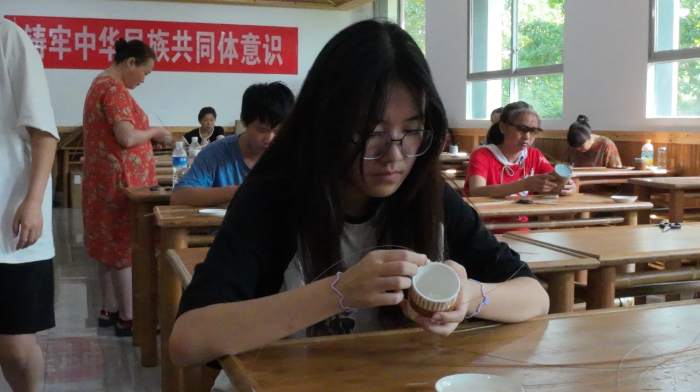 来自首都师范大学附属中学的黄梓馨正在这里研学。她说,她是在网上看到杨昌芹老师的报道,慕名而来。在这里,她不仅了解到竹编的20多道工序,也尝试着用竹丝编出漂亮的茶杯、提包、花篮等产品。同时,她也感受到了这项非遗技艺对于当地经济和妇女收入、地位的提升。
