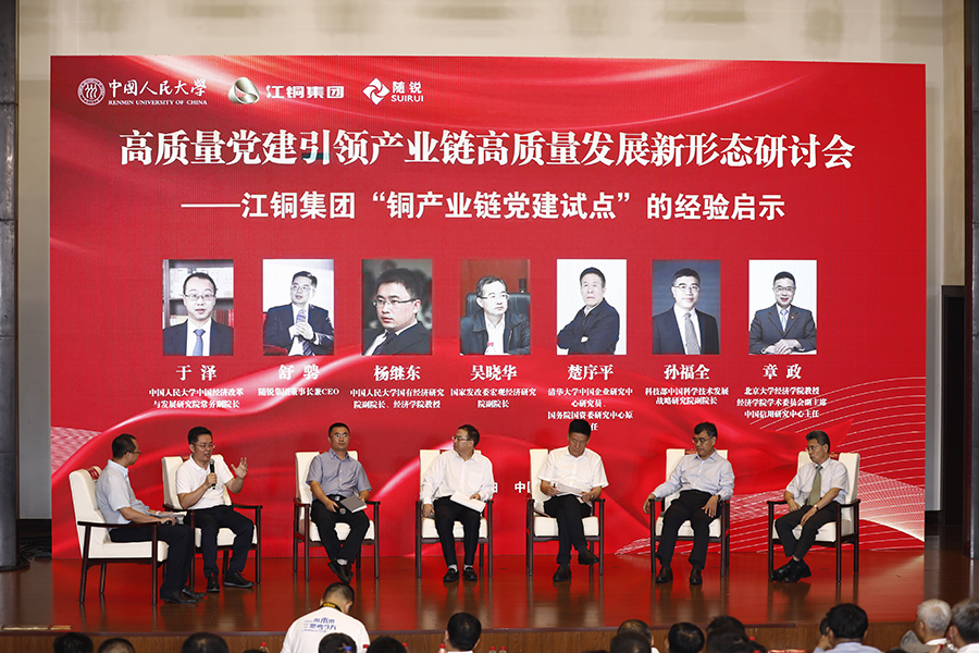 9月8日,由中国人民大学中国经济改革与发展研究院、经济学院和国有经济研究院联合主办的“高质量党建引领产业链高质量发展新形态研讨会”(下称“研讨会”),围绕铜产业链党建创新,深入研讨和总结高质量党建引领产业链高质量发展的重要运作机制和实践效果。