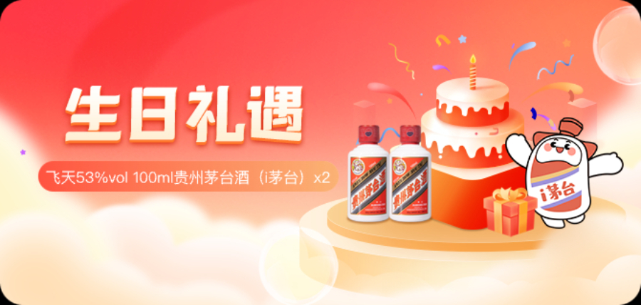 生日礼遇,岁岁相随:愿每一岁的自己都能奔走在自己的热爱里。9月21日起,可在生日当天9:00-18:00进入活动专属页面,点击参加2瓶飞天53%vol 100ml贵州茅台酒生日购酒活动。希望每一位的生日,小茅都能有幸陪伴。