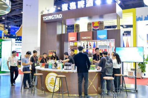 在位于会展中心B区的东盟国家商品展区,人头攒动。各国商品集中展示让人大开眼界。作为全球第五大啤酒厂商,青岛啤酒时尚现代的设计和丰富的互动体验,吸引了不少参展者的驻足和品鉴。