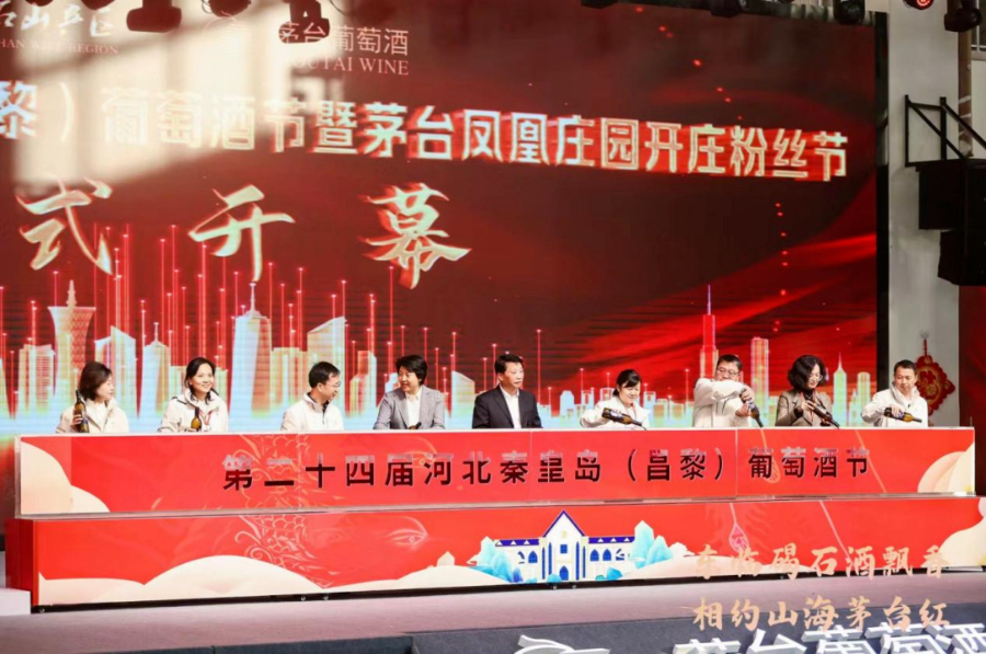 10月19日,由中国酒业协会、秦皇岛市人民政府主办,中共昌黎县委、县人民政府和贵州茅台酒厂(集团)昌黎葡萄酒业有限公司承办,主题为“东临碣石酒飘香 相约山海茅台红”的第24届河北秦皇岛(昌黎)葡萄酒节暨茅台凤凰庄园开庄粉丝节在茅台葡萄酒公司凤凰庄园启幕。来自国内葡萄酒行业的专家学者、碣石山产区葡萄酒企业代表、葡萄酒经销商、供应商代表、茅台葡萄酒粉丝以及新闻媒体等相聚碣石山下,话情谊,品美酒,共享美时代美生活。