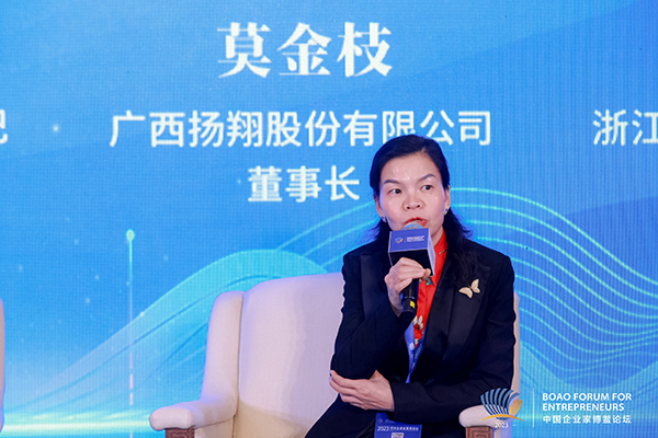 12月2日至5日,2023中国企业家博鳌论坛在海南博鳌举行。在3日召开的第九届绿色发展论坛上,广西扬翔股份有限公司董事长莫金枝分享了三点广西扬翔股份有限公司关于绿色农业的做法。