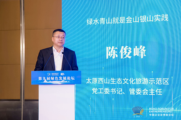 新华网博鳌12月3日电(记者徐宁)12月2日至5日,2023中国企业家博鳌论坛在海南博鳌举办。在3日举行的第九届绿色发展论坛上,太原西山生态文化旅游示范区党工委书记、管委会主任陈俊峰表示,西山生态文化旅游示范区牢固树立 “绿水青山就是金山银山”理念,以建设国际知名文旅康养目的地为目标,着力构建以生态为基础、文化为载体、市场为导向的可持续文旅新模式。