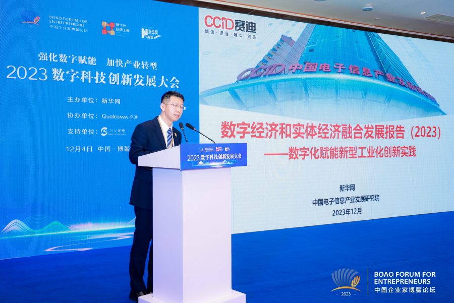 新华网海南博鳌12月4日电(记者凌纪伟)12月4日,由新华网主办的2023数字科技创新发展大会在海南博鳌召开。本次大会是2023中国企业家博鳌论坛的重要平行论坛。会上新华网联合中国电子信息产业发展研究院发布《数字经济和实体经济融合发展报告(2023)——数字化赋能新型工业化创新实践》,为助推两化融合、企业数字化转型和新型工业化建设提供参考。