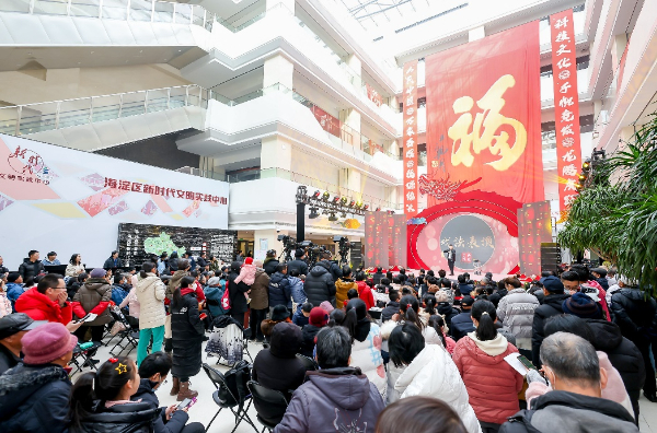 开幕式上,主会场海淀北部文化中心门前的舞龙舞狮、小车会、五虎棍等花会踩街活动欢快热烈,与西北旺镇、上庄镇、温泉镇等各分会场开展的两千余人的花会踩街活动形成呼应,充分展现了海淀地域文化的蓬勃生机。共享大厅内科技互动区,设置小哆爱屏互动体验装置,植入海淀新春“吃住行、游购娱”活动信息,飞花令、成语接龙等人机互动游戏趣味无限,文化与科技相逢引爆全场关注;非遗体验区、现场送福区人头攒动。舞台上,虚拟数字人首次在开幕式中担任主持,科技赋能文化铸魂,创新解读中国传统礼仪;盲盒奖品点燃全场气氛,现场连线共享苏家坨镇千人饺子宴;原创快板《马首归途》引来一片叫好声,国家级非物质文化遗产传承人吴彤带来的国乐演奏《彩云追月》及歌曲《好春光》让现场观众充分感受中华传统文化的独特魅力,女高音歌唱家王莉歌曲《灯火里的中国》、男女合唱《不负天下》唱出了海淀人拼搏进取的红色“赶考”精神。活动现场充满了浓浓的“文化味儿”和“科技范儿”。