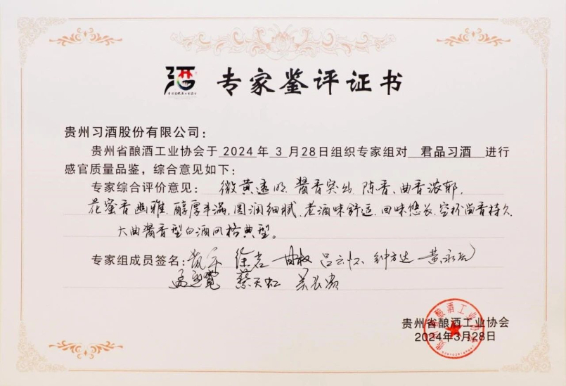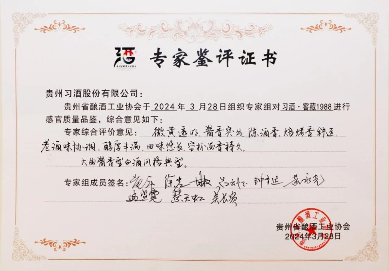 君品习酒、习酒·窖藏1988、金钻习酒专家组鉴评意见