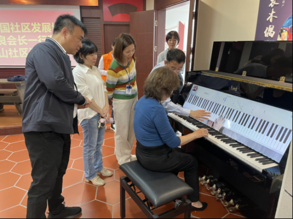 在阳台山社区党群服务中心,群众文艺活动空间里部署了由7架智慧钢琴组成的“社区智慧琴房”。中国社区发展协会相关负责人表示,通过钢琴自带的同宽大屏幕与内置的AI课程体系,大人和孩子都可以在“一对多”的交互技术和智能纠错中体验钢琴名师的“手把手”教学。同时,“社区智慧琴房”支持多人同时上课,最高可满足300名成人或120名儿童参与公益普惠钢琴学习活动。