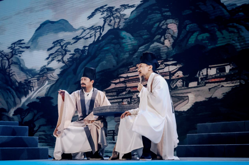 文化戏剧《岳麓记》的演绎将活动推向高潮。全剧通过朱熹与张栻的学术交流和深厚友谊,展现了南宋时期儒学思想的碰撞与融合,以古今对话的形式,探讨了学术、文化传承和君子品格等主题,展现了跨越时空的文化价值和君子立世的精神追求。