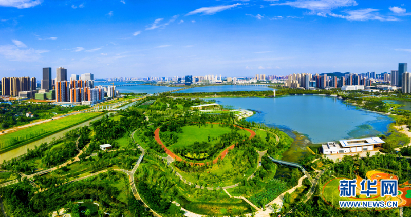 航拍武汉江夏中央大公园。新华网发 王运良 摄