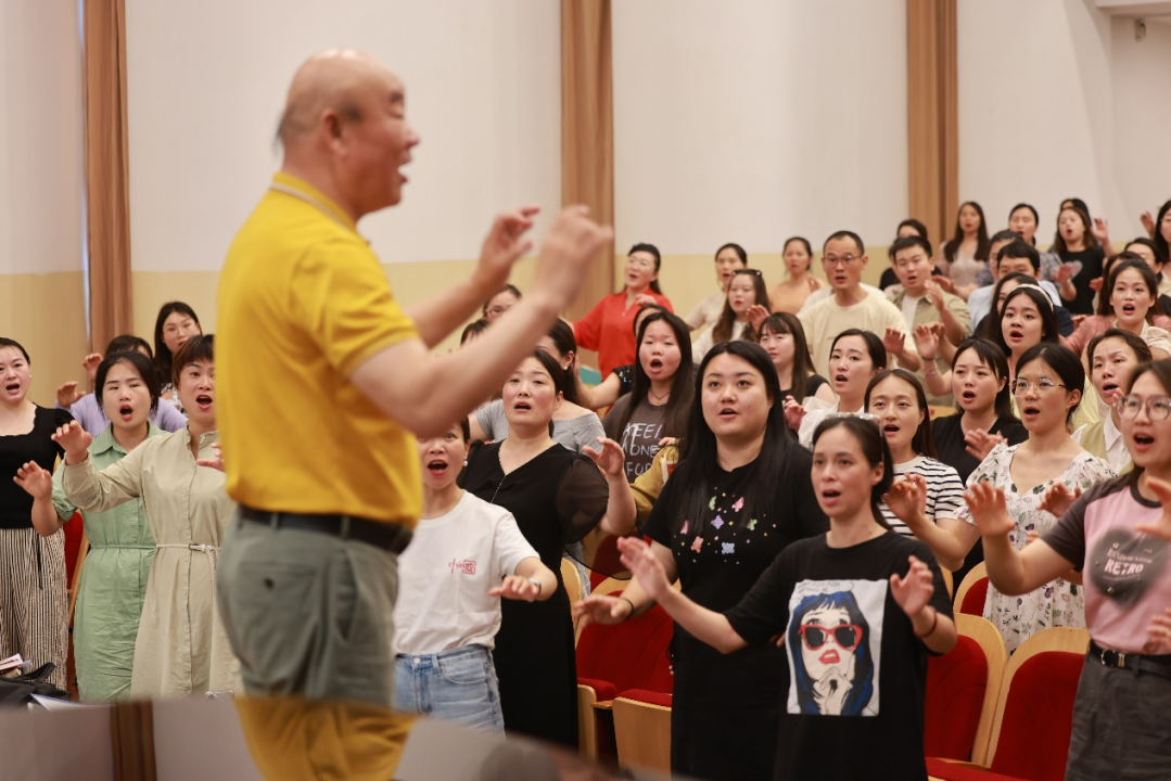 国家艺术教育委员会委员、河南省合唱协会理事长陈家海教授为现场老师讲授《合唱指挥法实践》课程