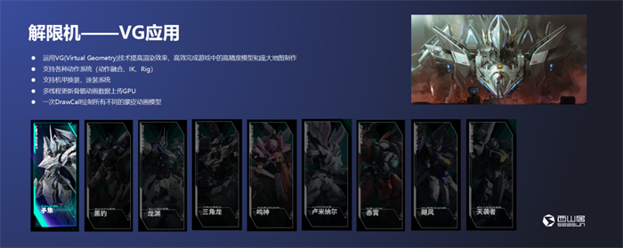 在今年,西山居八年打磨,推出的旗舰产品《解限机》运用VG(Virtual Geometry)提高渲染效率,高效完成游戏中的高精度模型和庞大地图制作,使游戏在视觉呈现上实现了质的飞跃,为玩家提供优质的游戏体验,解决了游戏行业中长期存在的难题。