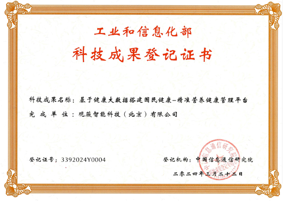 多年来,观薇智能通过自主研发、科技成果转化、产学研合作等途径,成功掌握眼部健康采集、人工智能健康分析等技术,并获得数十项发明、软著等知识产权。此外,经中国信息通信研究院审查核实,观薇智能“基于健康大数据搭建国民健康-精准营养健康管理平台” 项目获得北京杨秀伟教授为首的专家团队评估,项目整体技术达到国内先进水平,并获颁《科学技术成果登记证书》。