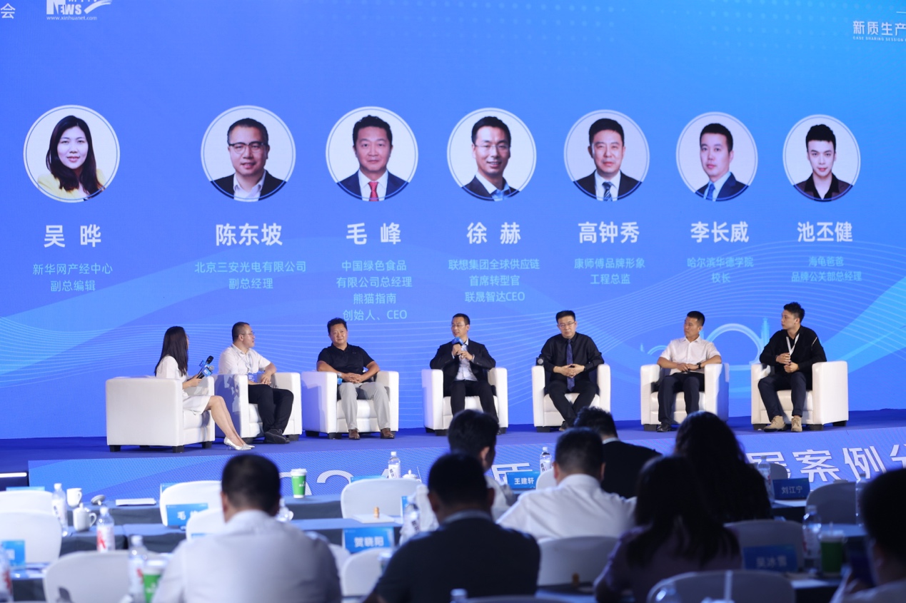 北京三安光电有限公司副总经理陈东坡,中国绿色食品有限公司总经理、熊猫指南创始人、CEO毛峰,联想集团全球供应链首席转型官、联晟智达CEO徐赫,康师傅品牌形象工程总监高钟秀,哈尔滨华德学院校长李长威,海龟爸爸品牌公关部总经理池丕健等六位嘉宾围绕“以新促质、以质图强”这一核心议题在此次分享会的圆桌论坛上深入探讨了新质生产力在不同行业间的新特点、新作用和新表达,论坛由新华网产经中心副总编辑吴晔主持。