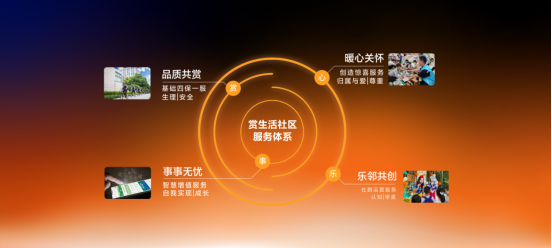 “赏生活”社区服务体系,以马斯洛需求层次理论为基石,精心构筑服务生态,全方位、多层次地满足业主的每一个生活向往:基础服务“品质共赏”,以高品质、高标准的服务确保业主的生理与安全需求得到坚实保障;惊喜服务“暖心关怀”,传递爱与尊重,让每一位业主感受到家的温暖与归属感;社群运营“乐邻共创”,促进业主间的相互认知与理解,激发社群活力,共同提升审美情趣与生活品质;智慧增值“事事无忧”,通过科技赋能,让生活更加便捷高效,助力每一位业主在追求卓越的道路上不断前行。