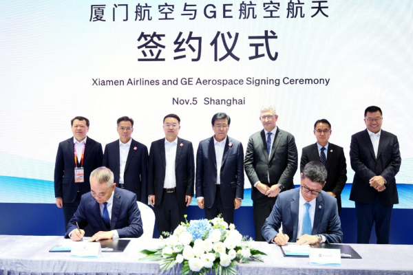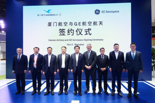 11月5日,在第七届中国国际进口博览会上,GE航空航天(纽交所代码:GE)与厦门航空有限公司(以下简称“厦航”)宣布签署35台GEnx-1B发动机的TrueChoice™服务协议,为厦航的波音787梦想机队提供发动机的修理和大修服务。