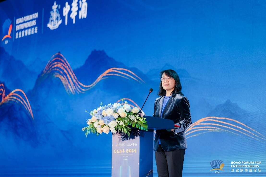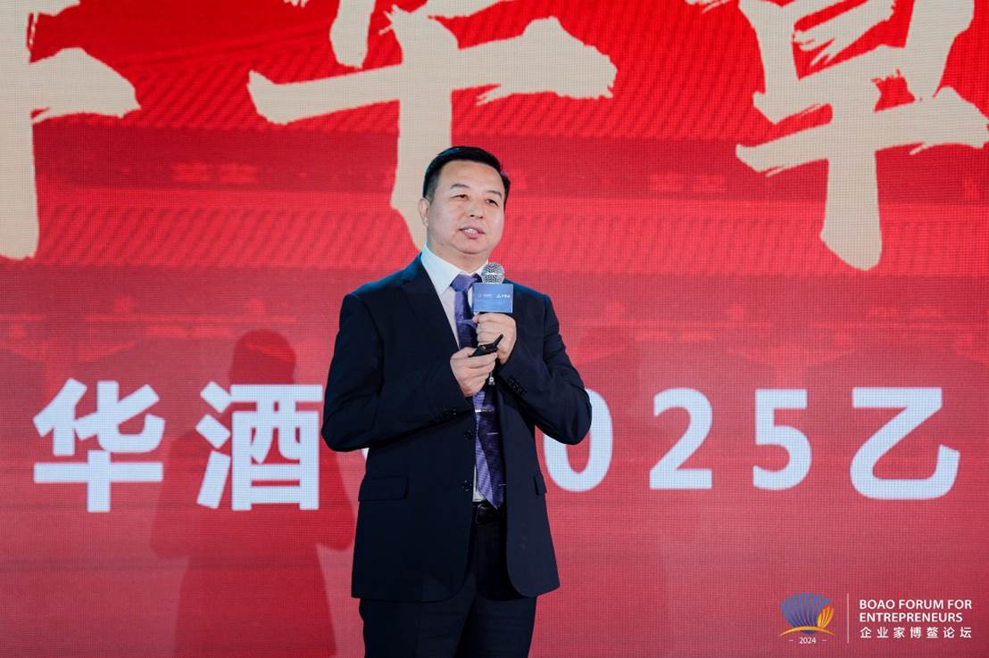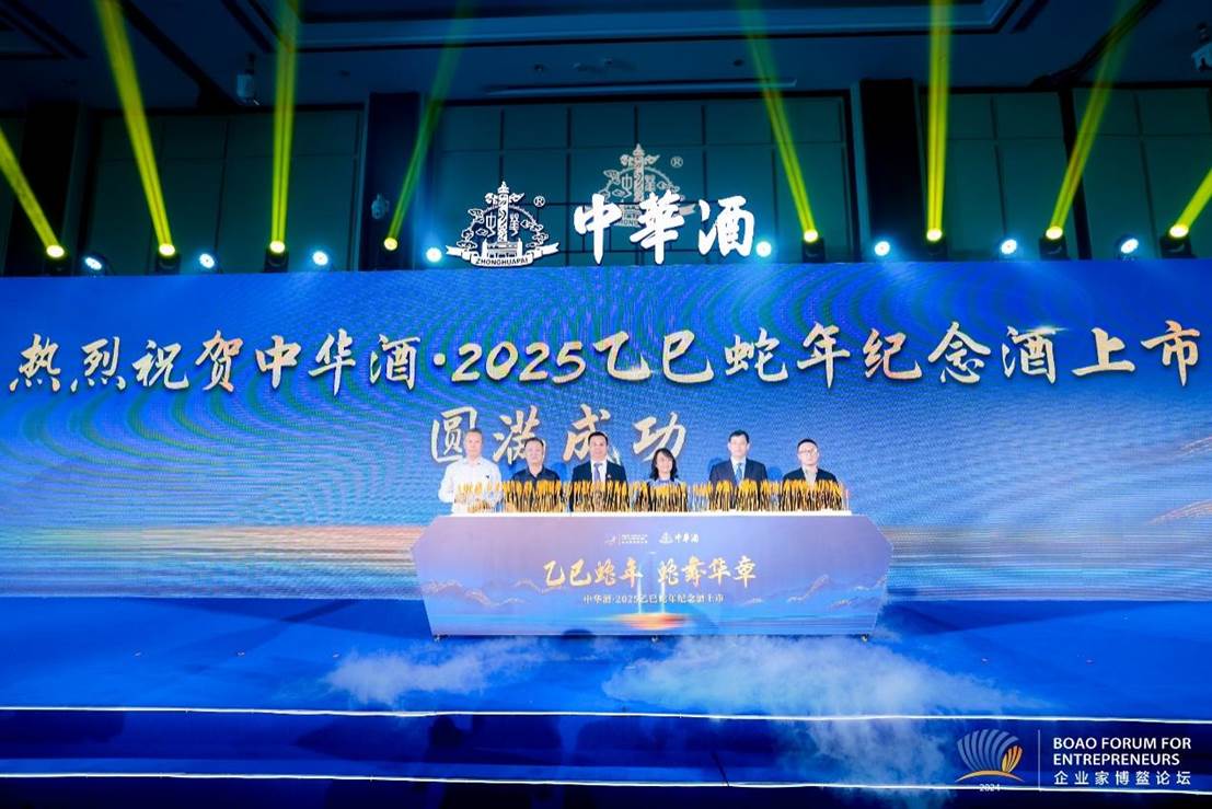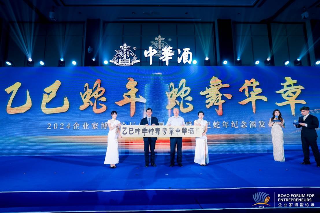 北京首都酒业有限公司总经理刘立清为大家详细介绍了这款新品的设计理念以及中华酒品牌所蕴含的文化内涵等内容,他提到:“一岁一生肖,一酒一传承。去年,中华酒去年推出了首款限量1万瓶的甲辰龙年生肖酒,一经上市就被一抢而空。今年很荣幸能在2024企业家博鳌论坛上推出中华酒(乙巳蛇年纪念酒)。”