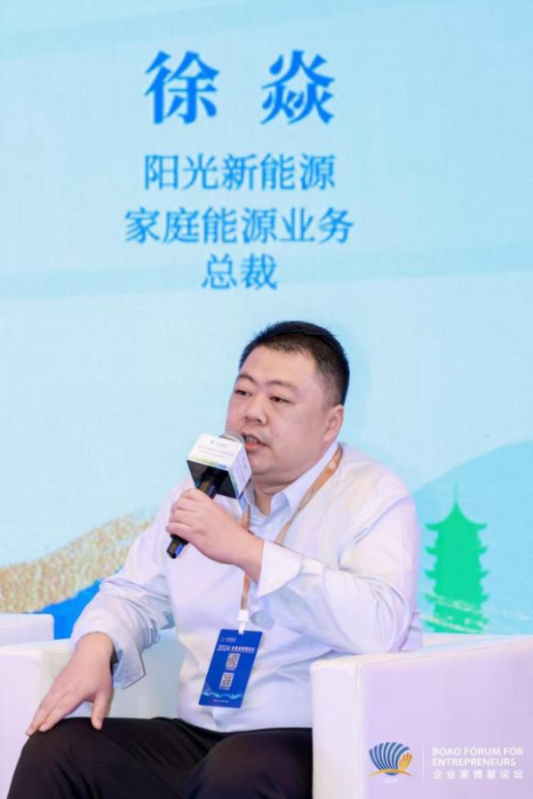 新华网博鳌12月4日电(记者 高方圆)12月2日至4日,2024企业家博鳌论坛系列活动在海南博鳌举办。在12月3日举办的2024美好人居发展论坛上,阳光新能源旗下阳光家庭能源业务总裁徐焱表示,“绿色人居”理念日渐深入人心,无论从24小时备电、降低用能支出的角度,还是从使用清洁电力,引领低碳生活潮流的需求角度来说,这些别墅、大宅用户对家庭能源产品的需求是非常大的。