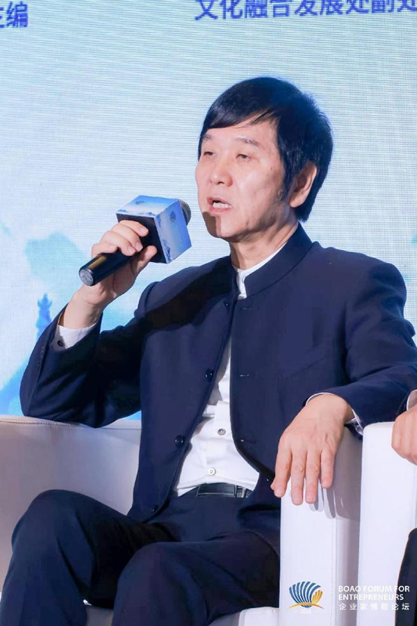 图为西藏自治区美术家协会名誉主席唐天源在论坛参加圆桌对话环节