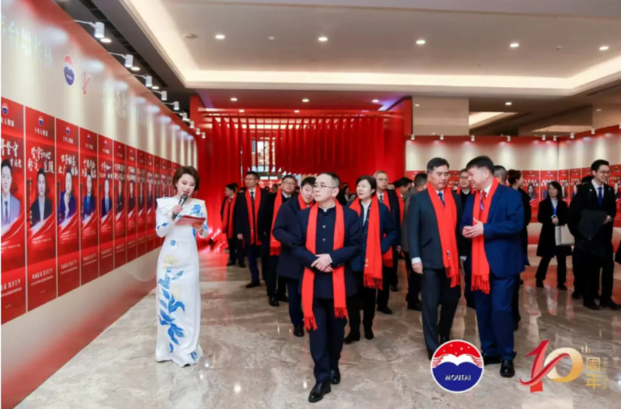 会前,出席活动的领导嘉宾、经销商代表还一同参观了酱香酒公司产品展陈和文化展陈,通过“2014—2024,我们的醉美拾光”茅台酱香大事记、“承文化根脉·扬酱香美韵”品牌推广活动集锦、公益领域品牌建设情况、十年人物展以及员工艺术作品展等,深入了解酱香酒公司十年栉风沐雨、砥砺奋进的发展历程。