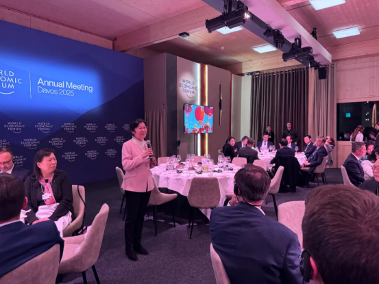 参会期间,王莉还与世界经济论坛全球执行董事梁锦慧就可持续发展中企业的碳、水的管理以及中国企业国际形象推广等内容进行了面对面交流沟通。
