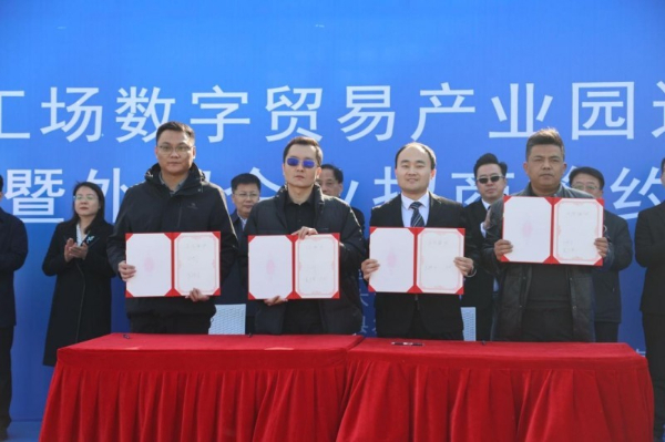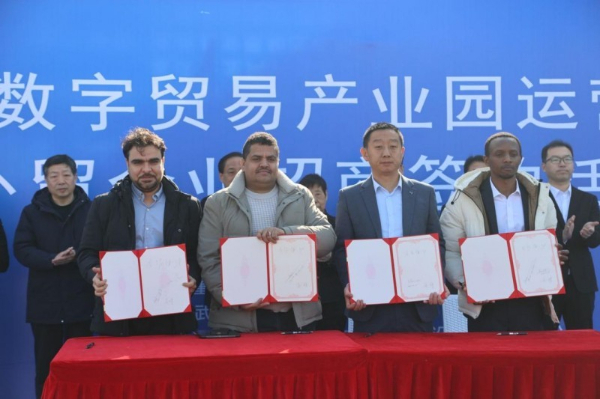 在开园仪式现场,大龙网集团河北区域总经理与来自卢旺达、巴基斯坦、也门的海外渠道商企业代表们签署海外渠道战略合作协议,此次战略合作的达成,为武邑本土企业开拓中东、南亚海外市场奠定渠道基础。同时,还举行了国内招商企业入驻签约仪式,在后续的运营中,武邑龙工场将助力武邑本土产业走出国门,走向世界。