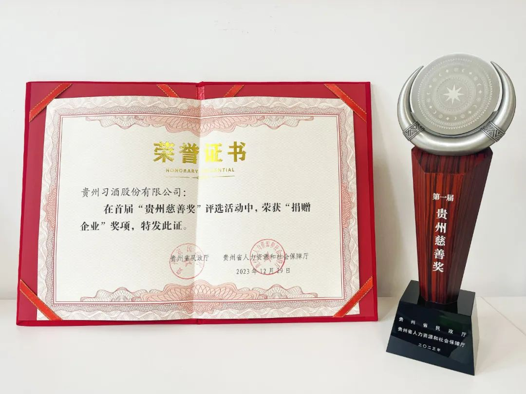 近日,希望工程爱心企业贵州习酒股份有限公司荣获首届“贵州慈善奖”捐赠企业奖项。贵州习酒股份有限公司恪守“崇道、务本、敬商、爱人”的企业核心价值观,践行“知敬畏、懂感恩、行谦让、怀怜悯”的习酒品格,在推动企业持续高质量发展的同时,积极承担社会责任,凭借在支持社会公益和履行社会责任方面的突出贡献,多次荣登中国企业慈善公益500强、中国制造业企业慈善公益500强榜单,并荣获“全国优秀社会责任企业”“希望工程实施30周年突出贡献者”等荣誉。