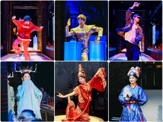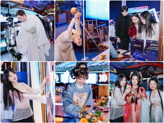 此次发布会,知交酒品牌循着酒香穿越时光长廊,同时向古时、现代和未来的朋友发出邀约,融合汉服、礼乐、舞蹈、电音等丰富元素,打造了一场场精彩绝伦的舞乐短剧,尽情展现数字时代的情谊篇章,重现趣味盎然的欢聚场景。此外,知交酒品牌聚焦“不必东张西望 知交就在身旁”创意主题,在场外设置花式调酒、长嘴壶茶艺、乐队表演和机器人互动等环节,吸引众多游客前来体验打卡。