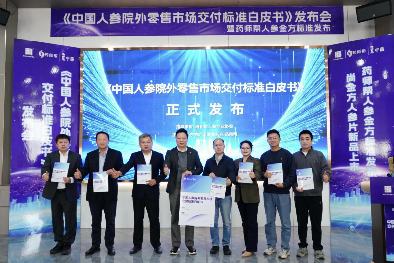 在此背景下,通化市人参产业协会、东方红西洋参药业、药师帮共同编写的白皮书,从行业格局及政策动态出发,总结协会与企业实践经验,打造涵盖道地性产品、种植规范、加工工艺、质量安全、流通追溯、院外市场交付的六大标准体系,为人参产业探索与政策协同的全产业链高质量发展路径提供了有益借鉴。