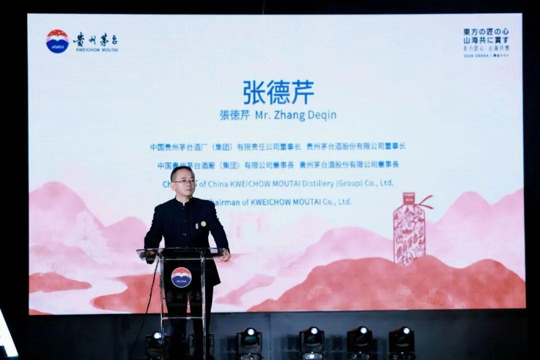 致辞中,茅台集团党委书记、董事长,茅台酒股份公司党委书记、董事长张德芹以“赤水东瀛共明月,茅台世博启新章”为题,作了三点分享。首先,茅台是中国酿造技艺历史的匠心印记。从公元前135年汉武帝“甘美之”的赞美,到如今成为全球最具价值烈酒品牌,茅台见证了中国酿酒技艺的薪火相传。一代代茅台工匠恪守“顺天应时 道法自然”酿造传统,顺应二十四节气规律,以红缨子高粱为骨、赤水河之水为魂,历经5年的漫长淬炼,将时光酿成琥珀色的诗篇,造就永恒吟诵的艺术经典。其次,茅台是中华优秀传统文化的传播使者。茅台将中国“和而不同”的哲学智慧,酿成了举世共赏的文明甘露,茅台深切地体会到美酒不仅是地理坐标,更是文明坐标。茅台酒“天人共酿”的酿造哲学,也正成为世界读懂中国的新语言。再次,茅台是人们建立情感链接的醇香纽带。茅台始终秉持可持续发展理念,积极推动传统酿造与现代科技融合,努力打造行业领先的数字工厂、零碳工厂样板,持续提升茅台发展的“含金量”“含绿量”“含新量”。世博会作为人类文明互鉴的顶级殿堂,始终见证着科技与人文的共生共荣。茅台将持续以更加开放的姿态拥抱世界,为焕发生机的未来社会,注入新的健康活力。