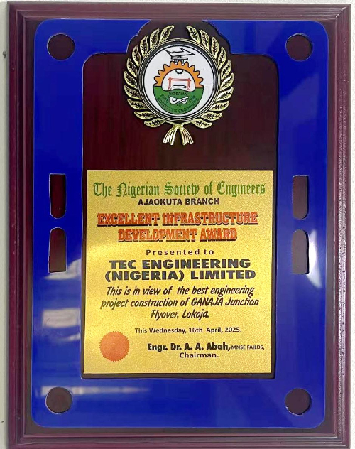 为充分肯定中铁国际在尼日利亚科吉州洛克贾城市立交桥项目建设中的重大贡献,尼日利亚工程师协会(NSE)近日授予中铁国际所属川铁国际公司“卓越基础设施建设成就奖”荣誉奖牌,这也是企业第二次荣获该奖项。