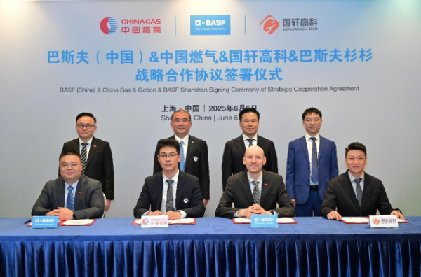 6月6日,2025 年上海国际碳中和技术、产品与成果博览会(简称“上海碳博会”)期间,中国燃气控股有限公司(简称“中国燃气”)与巴斯夫、合肥国轩高科动力能源有限公司(简称“国轩高科”)及巴斯夫杉杉电池材料有限公司(简称“巴斯夫杉杉”)在上海浦东共同签订战略合作协议,达成四方战略合作。