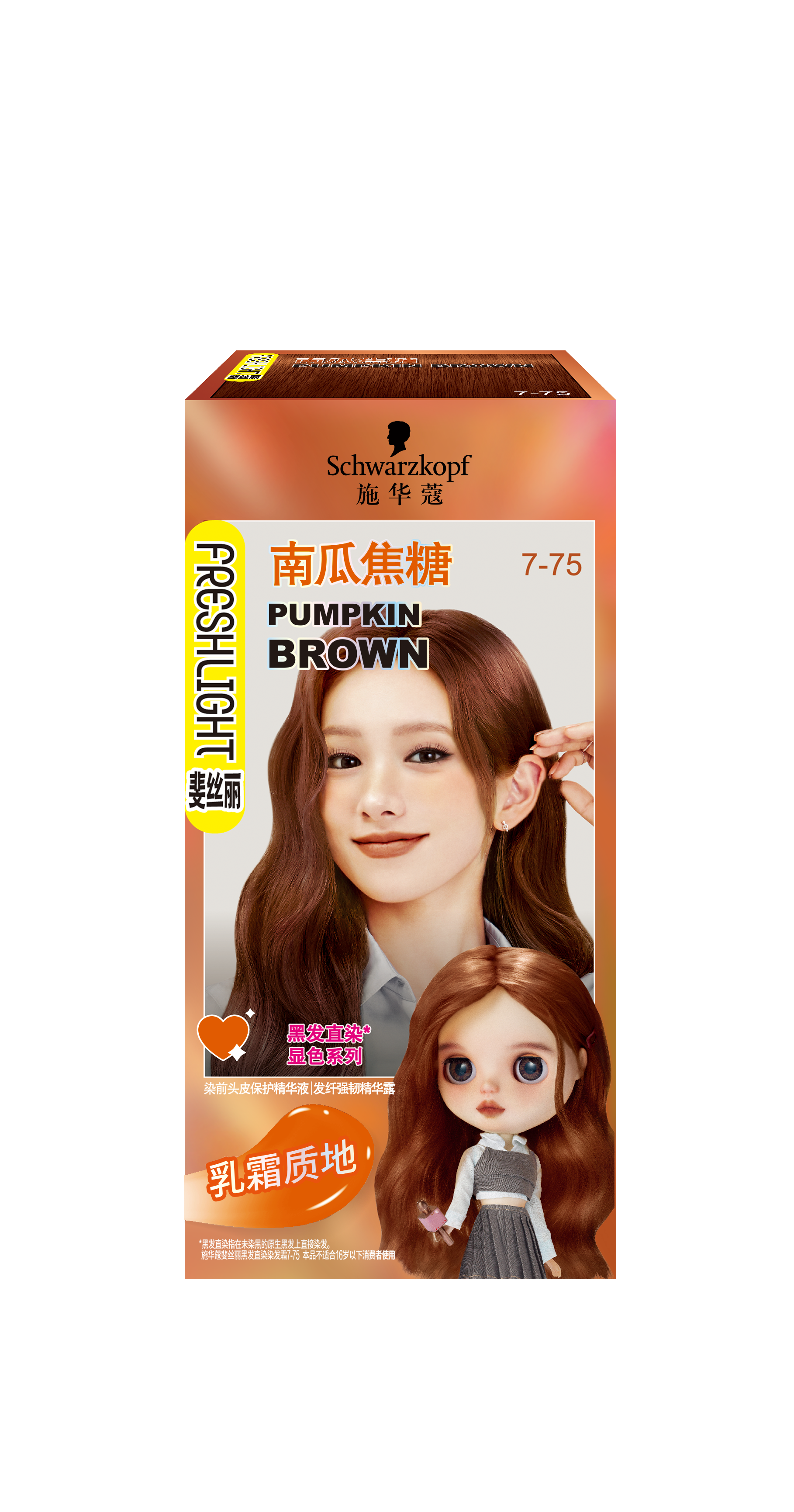 施华蔻斐丝丽黑发直染染发霜:专研色彩高显色配方,无需漂发也能臻彩显色。三重复合油保护膜协同pH4.5平衡锁色技术,牢牢锁住发芯色彩,有效减少颜色流失,轻松告别掉色枯黄感,持久守护发色清透,赋予发丝轻盈呼吸感。多彩发色随心染,熠现至真本色个性。今夏全新多巴胺绚彩色号:南瓜焦糖色号在活力橘棕的明媚中融入棕灰的高级质感,一抹高级脏橘时髦又显白,完美诠释慵懒随性的摩登腔调。树莓红棕色号既拥有葡萄酒红的醇厚浓郁,又拥有莓果色调的叛逆甜酷,于百变风格之间散发多重魅力。