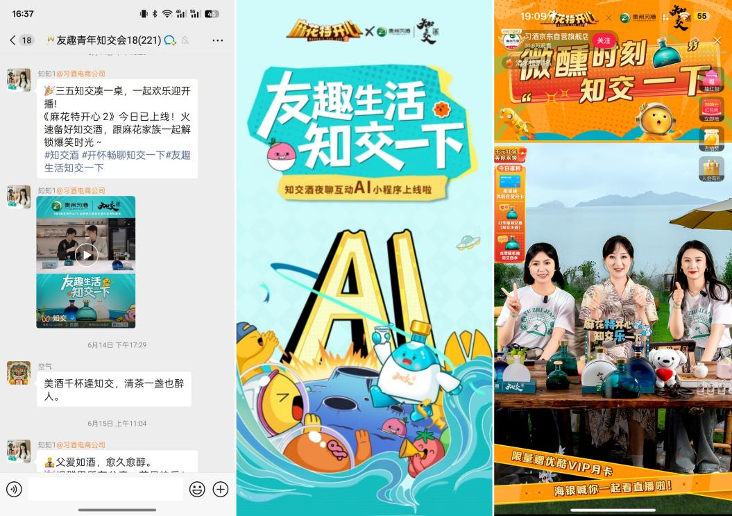 同时,知交酒围绕节目播出节奏,同步开展AI互动玩法、平台直播互动、私域深度运营、达人联动创作以及自媒体根据IP二创品牌内容等多元营销活动,形成节目内外的双线传播效应,有效扩大了知交酒的用户触达深度。