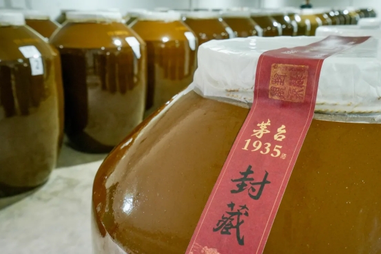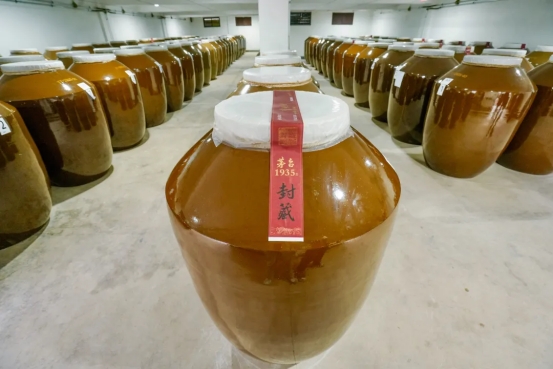 茅台1935封坛酒存放在贮存茅台酒的酒库中,与茅台酒“同窗”修行,享共同、共通的微生物环境。