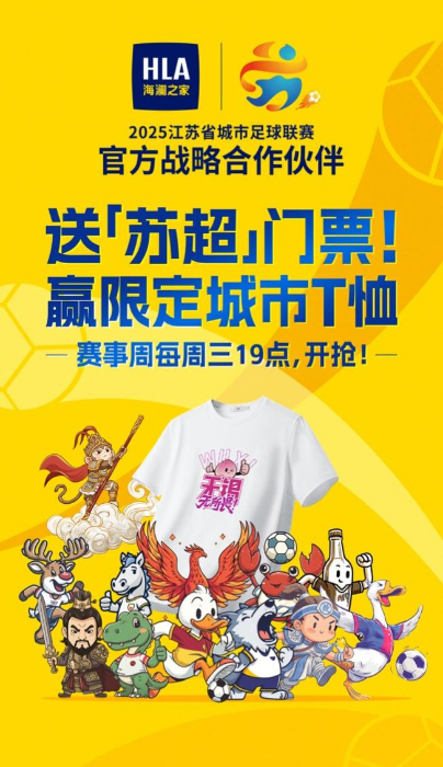 为了让广大球迷更深入参与到赛事中来,海澜之家自6月25日起推出“澜哥请你免费看‘苏超’”活动。赛事周每周三在海澜之家官方微信公众号参与活动,即有机会获得“苏超”现场门票、主客场「苏超城市T恤」等超值惊喜。此外,海澜之家在每个城市主场设置专属打卡点,让球迷近距离感受足球狂欢的同时,定格与足球共舞的激情瞬间。一系列全方位深度融合,极大地增强了球迷对赛事和品牌的认同感与归属感,也让更多人感受到江苏足球的魅力。