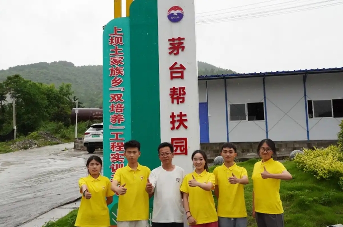 茅台学院 ‘硒’望无限”团队成员在道真茅台帮扶园实地跟踪酒糟菌棒生长情况
