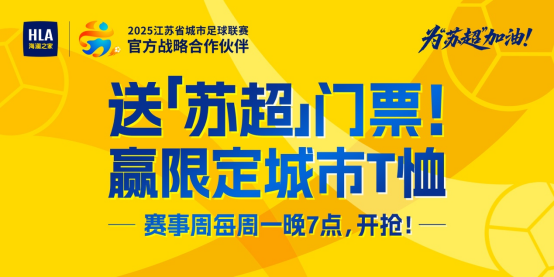 关注“海澜之家”官方微信公众号参与活动,即有机会获得“苏超”现场门票,更有主客场「“苏超”城市T恤」、30元「“苏超”城市T恤」抵用券等专属好礼,为球迷带来满满福利和惊喜!