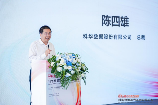 科华数据股份有限公司总裁陈四雄发表致辞,他表示,科华数据依托近40年电力电子技术积累和10余年数据中心实战经验,逐步构建起“懂电力、懂散热、懂场景、懂服务”的核心竞争力。他表示,科华始终践行“以绿色电能驱动数智未来”的使命,期待与合作伙伴们共建开放创新的算力新生态,携手推动高效低碳算力成为新质生产力发展的关键支撑。