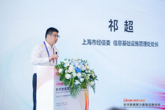 会上,上海市经信委信息基础设施管理处处长祁超发表致辞,他表示,上海始终积极落实国家战略部署,抢抓数字化、智能化、绿色化发展机遇,加快布局新一代信息基础设施,全力打造具有全球影响力的“国际数字之都”。上海将继续秉持开放合作理念,与包括科华数据在内的众多优秀企业携手,共同推进算力基础设施的高质量发展,为构建多元、高效、绿色的算力生态贡献更多的“上海方案”。