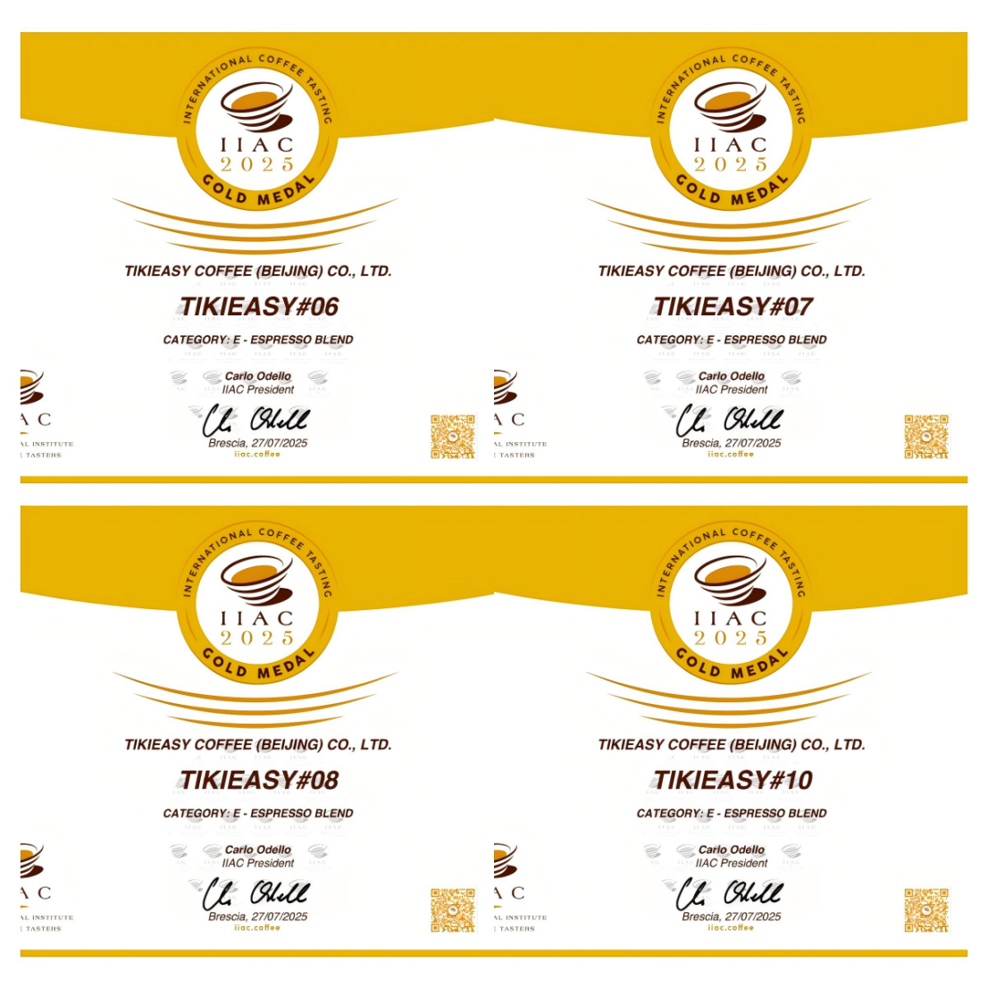 此次获奖的四款意式拼配豆(编号:TIKIEASY#06, #07, #08, #10)均由易捷咖啡产品研发团队精心打造。团队深入埃塞俄比亚、巴西、哥伦比亚等全球优质咖啡产区,严选生豆,反复优化配方比例与烘焙工艺,成功捕捉不同产区的独特风味,呈现出浓醇饱满、层次丰富的精品咖啡体验,赢得了IIAC国际评委团的高度赞誉。