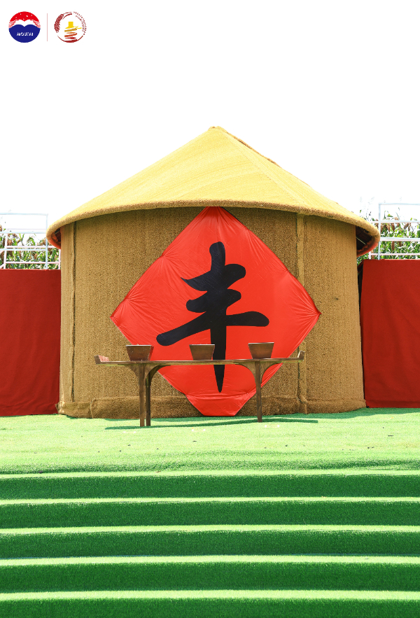 茅台酒酿造技艺传承人王刚和粮农代表王宗龙手持柏枝绕仓缓行,完成“澄境驱秽”的熏仓传统,在青烟袅袅中寄托“仓洁纳嘉,福泽万年”的祈愿;敖正清等三位代表以茅台酒敬天,感念“天赐玉露润粱魂”;陈玉彬等三人奉上红高粱汤圆祭地,致敬“地孕佳禾藏岁月”;彭朝及三位农人将饱满的高粱穗插入祭坛瓮罐,完成“薪火相传,泽被千秋”的先贤礼敬。