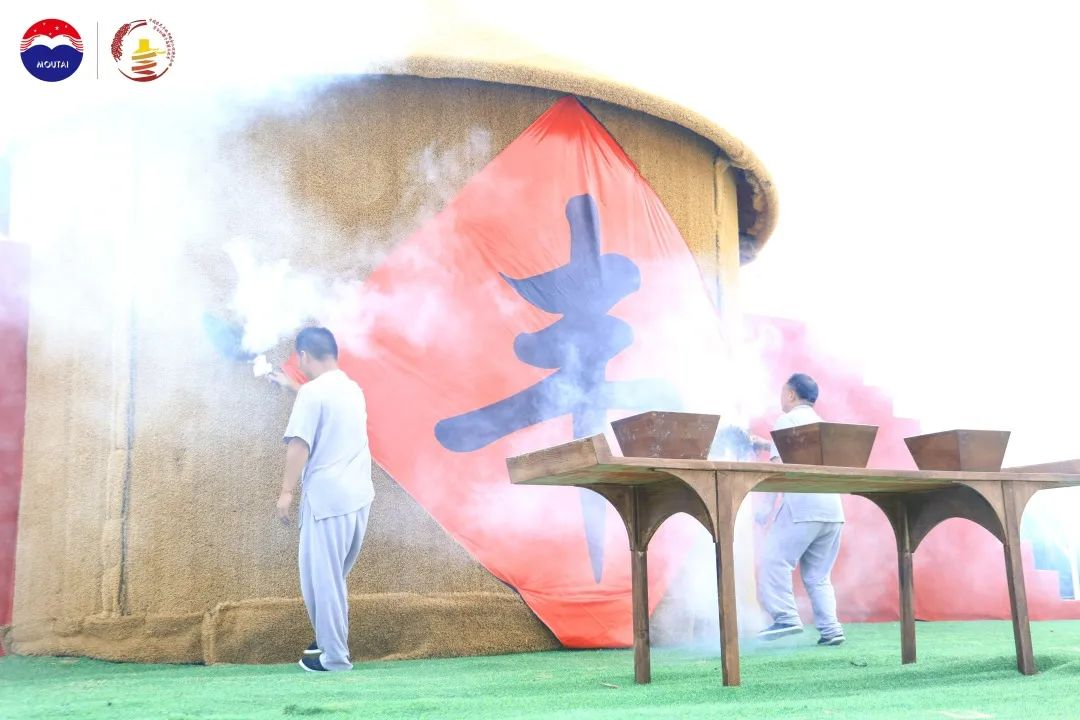 仪式中,茅台人和粮农代表手持柏枝绕仓缓行,完成了澄境驱秽的熏仓传统,在袅袅青烟中寄托“仓洁纳嘉,福泽万年”的祈愿;随后以茅台酒敬天,感念“天赐玉露润粱魂”;再将饱满的高粱穗插入祭坛瓮罐,行“薪火相传,泽被千秋”的先贤礼敬。