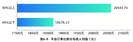 调查数据显示,数字能力得分较高的司机群体(平台订单占比90%以上的司机群体),其月均毛收入和净收入水平均明显高于得分偏低群体;平台订单占比越高,货车司机的收入也明显更高。这种对比表明,数字能力的强弱和平台使用程度已经成为影响劳动回报与职业发展的核心因素之一。