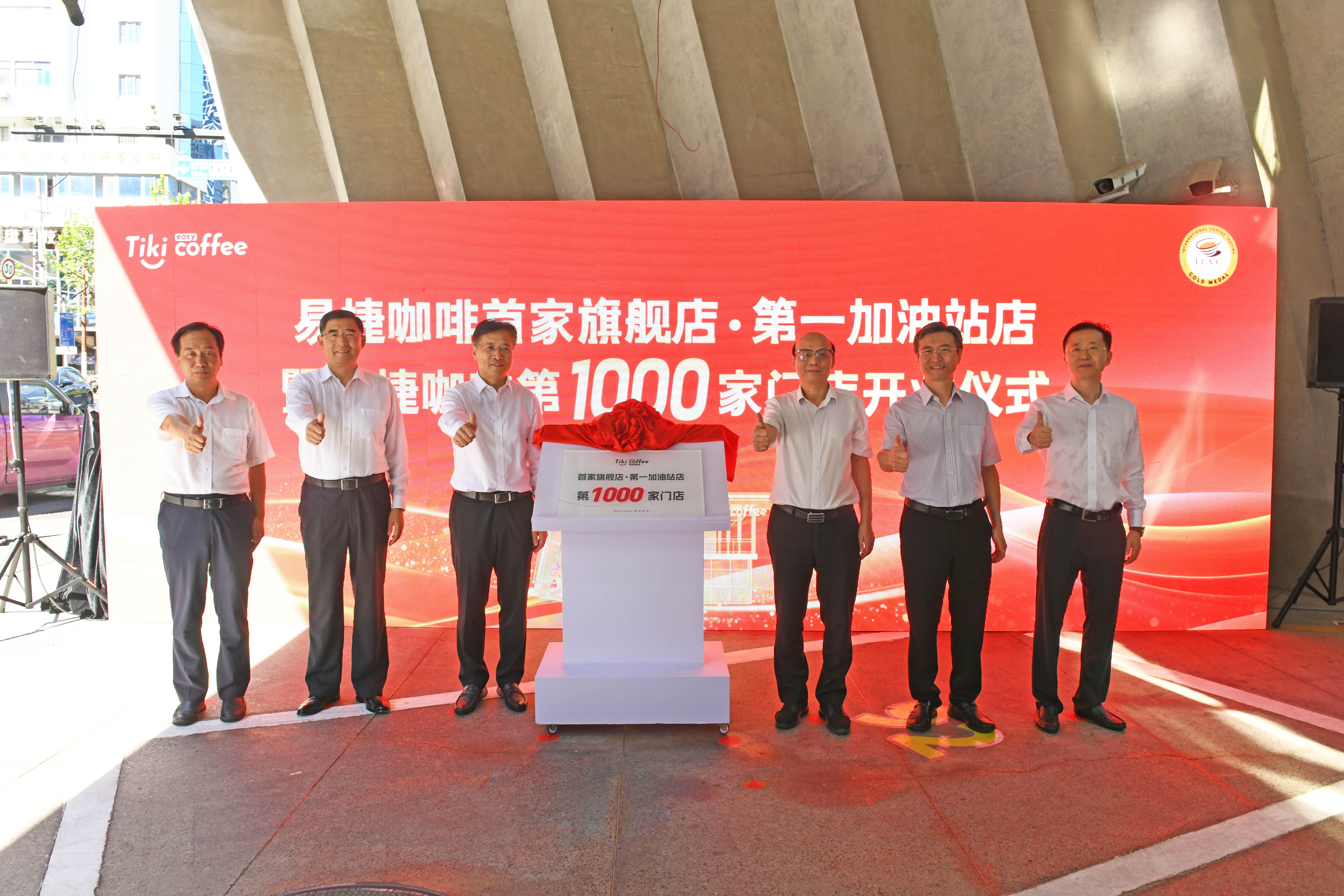 图为中石化易捷咖啡全国第1000家门店暨首家旗舰店在上海第一加油站开业仪式。