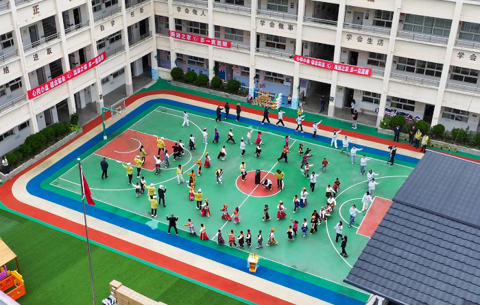 在四姑娘山镇小学,同学们身着民族服饰,为志愿者们献上洁白的哈达,别开生面的“民族歌舞共学”活动让校园充满活力,学生们跳起热情的藏族锅庄舞,周立宸与志愿者们也加入其中,跟着节奏学习简单的舞步,现场其乐融融。