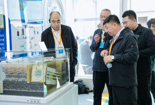 在“中煤冻结”展示区,代表们领略了冻结工艺的神奇力量。中煤建设集团把冻结法作为破解深地复杂地质难题的利剑,创新研发了垂直导向孔光纤陀螺测斜定向仪、智能巡检机器人及智能化冻结管控系统等。