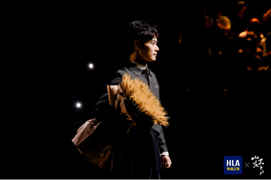 本季发布秀以青年演员曹骏为国潮系列代言人。曹骏自年少成名,始终保持低调沉稳的态度,其内敛而坚韧的气质,与「山不在高」系列所倡导的东方精神不谋而合。在发布秀中,他以“春山觉醒”与“秋山收获”两个篇章的造型亮相,分别诠释了生命的萌动与成熟。米色卫衣与卡其伞兵裤的搭配,配以竹编花篓的意象化造型,传递出新生与希望的象征;而深灰针织与黑色弯刀裤的组合,搭配金黄麦穗的手持道具,则寓意积淀与丰盈。